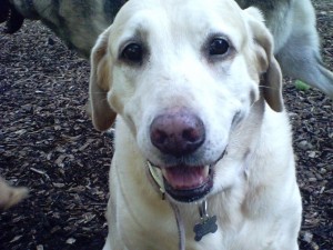 This is Roxy. She is a middle-aged yellow lab but you wouldn’t know it from her spunk! She loves to take naps in the sun and be with all of us people to make sure she gets lots of loving! She is one sweet girl!